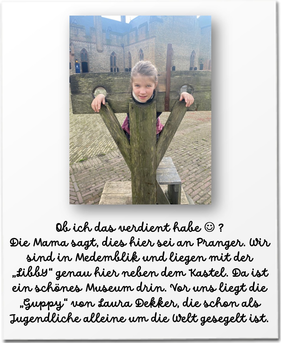 In Medemblik liegt vor uns das Schiff von Laura Dekker, die als Jugendliche für ihre Solo-Weltumseglung in der Zeit von 2010 bis 2012 bekannt wurde.