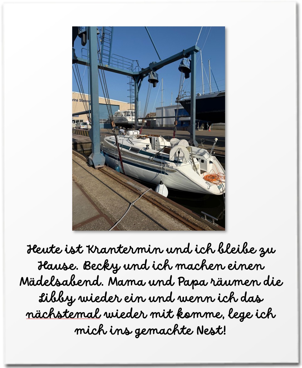 Heute ist Krantermin. Der Mast wird gestellt. Im Winterlager haben wir neue Wanten und Stagen, also das komplette stehende Gut wurde ausgetauscht. Das laufende Gut folgt noch. Außerdem haben wir eine neue Rettungsinsel im Container, einen neuen Windmesser sowie Logge und Lot sind neu. Einbisschen muss noch justiert werden.