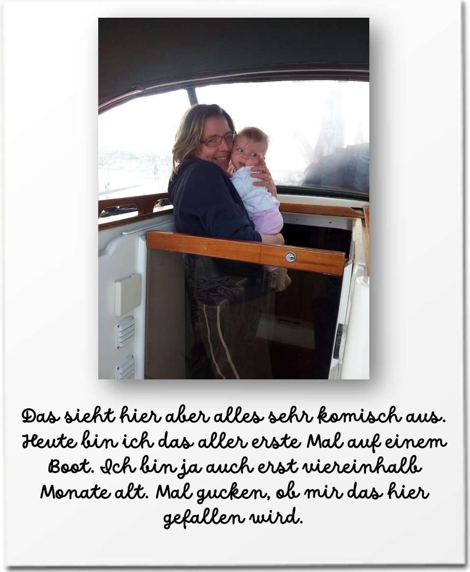 Für Katja und Stefan ist der heutige Tag eine Premiere! Nicht, dass wir zu dritt segeln, denn das haben wir in der Vergangenheit in der Türkei des öfteren getan … nein, wir waren noch nie mit einem Baby unterwegs. Mit gemischten Gefühlen gehen wir an Bord und hoffen, dass es Hannah gefallen wird. Hier guckt sie ein wenig skeptisch, aber für Hannah ist mit gerade einmal mit vier Monaten ohnehin alles neu. Packen wir einfach noch ein Boot obendrauf ha ha ha! Wir sind uns der Verantwortung bewußt, vertrauen aber auf unsere Erfahrungen sowie seemännischen Geschick und werden das Schiffchen im Griff haben. Doch zu einem Schiff gehört eben auch eine Crew und diese soll sich eben auch wohlfühlen. Wir sind gespannt, wie sich unser (B)Logbuch entwickeln wird. Stefan dolmescht derzeit noch Hannah’s Babygebrabbel und schreibt es stellvertetend unter das Polaroid-Foto … natürlich frei interpretiert. Schauen wir mal, wie das im Jahr 2025 aussehen wird.