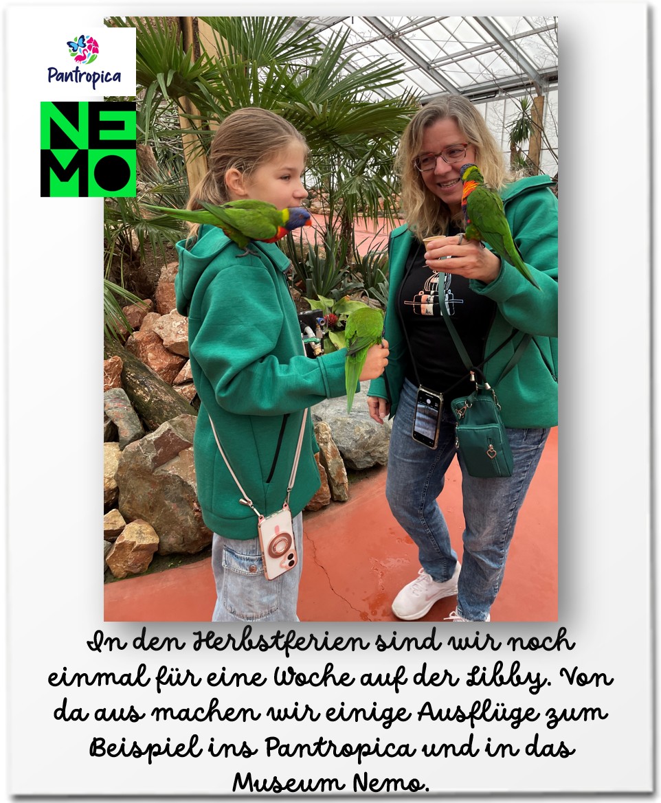 Die Saison ist fast zu Ende. In den Herbstferien nutzen wir noch einmal die „Libby“ als eine Art Campingwagen auf dem Wasser. Das Wetter ist leider zu schlecht. Es regnet sehr viel. Also, machen wir es uns auf der „Libby“ gemütlich und erkunden das Umland mit dem Auto.